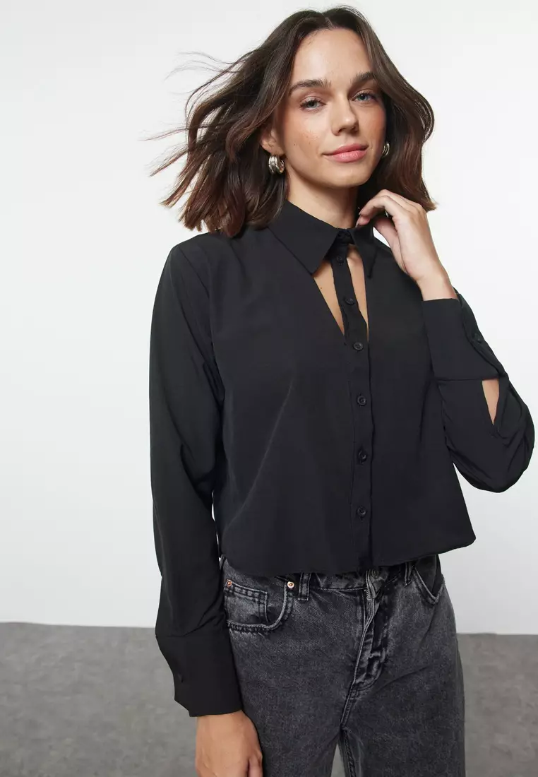 Cut Out Detailed Crop Shirt