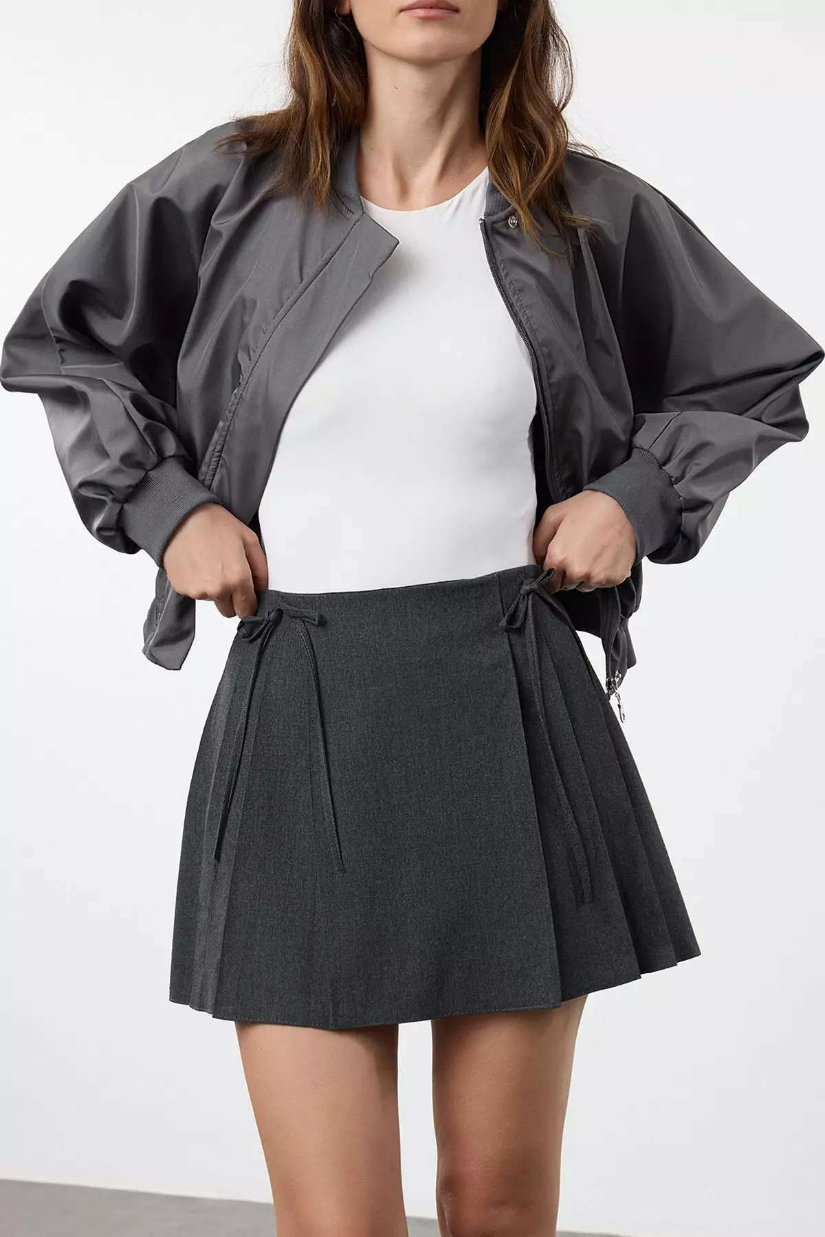 TrendyolDark Anthracite Pleated And Ribbon Detailed Mini Skirt Tedaw25Et00012419000.00398050.00