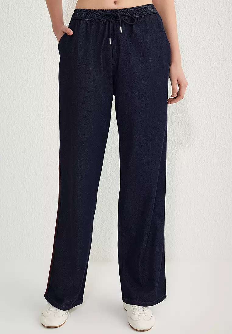 TrendyolDark Blue Elastic Waistband Stripe Detail High Waist Wide Leg Jeans809000.00