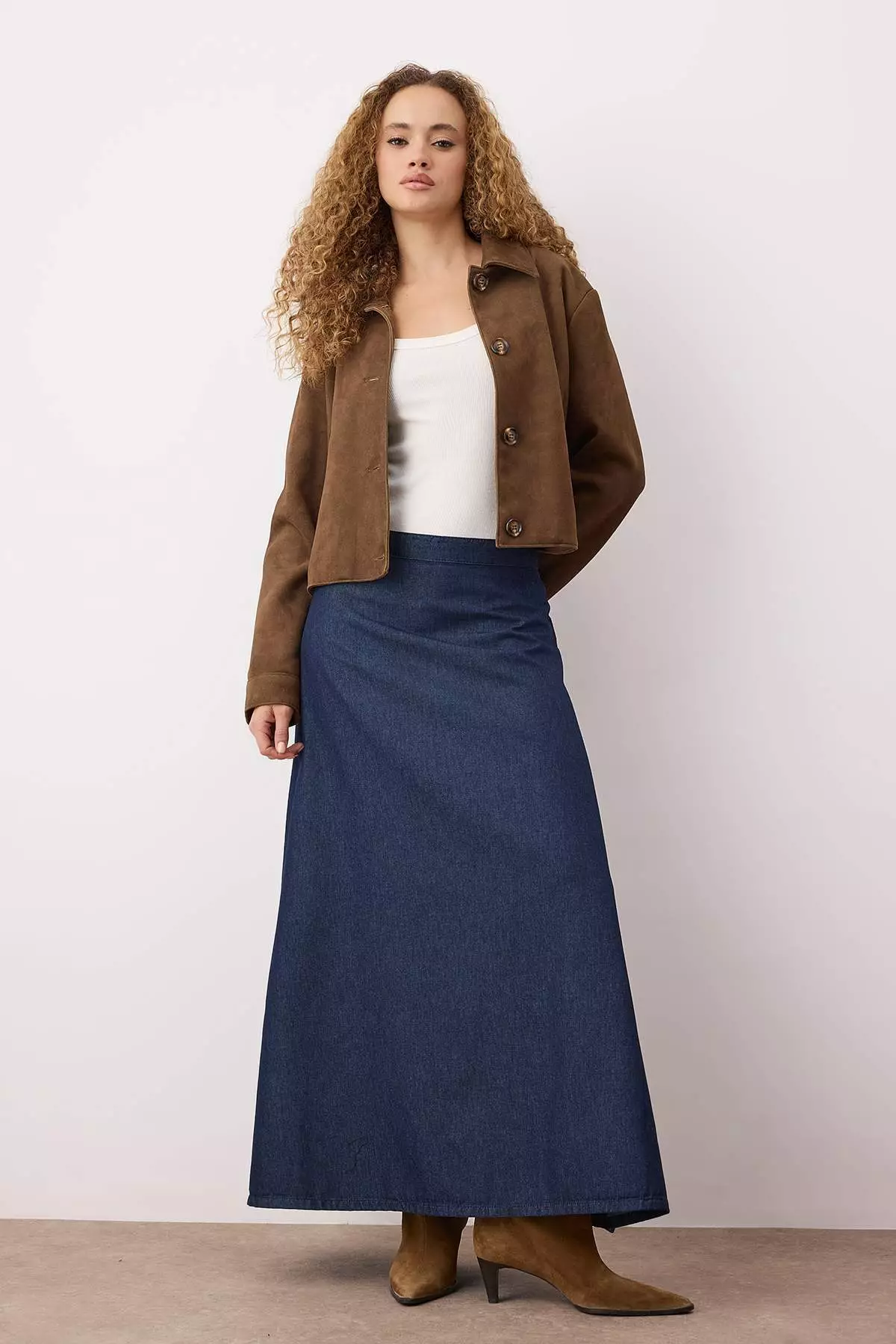 Dark Blue Flounce Maxi Denim Skirt