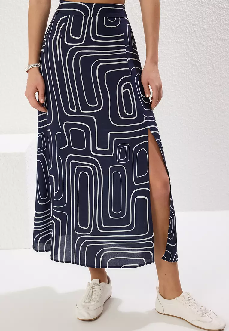 TrendyolDark Navy Blue Patterned Slit Detail Midi Woven Skirt869000.00457600.00
