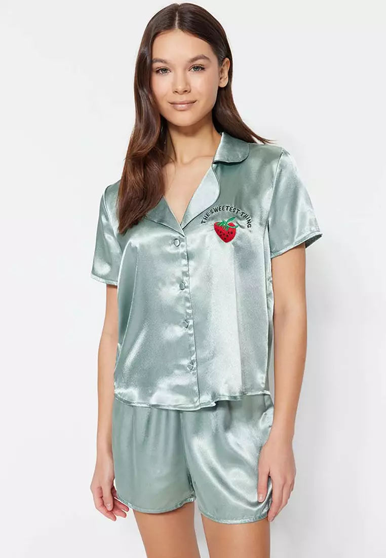Embroidered Satin Pajamas Set