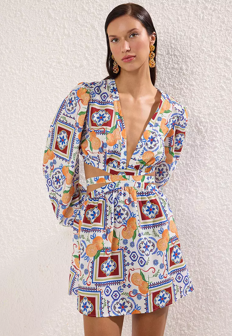 TrendyolFloral Patterned Mini Woven Cut Out/Window 100% Cotton Beach Dress TBESS23EL00140829000.00