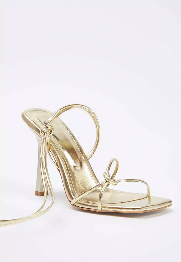 Gold Ankle Strap Detail Women Thin Heeled Sandals Takss25To00095