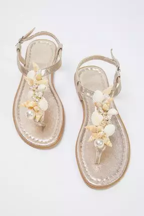 TrendyolGold Sea Shell Pearl Detailed Flip Flops Women Stylish Sandals Takss25Sd00008699000.00664050.00