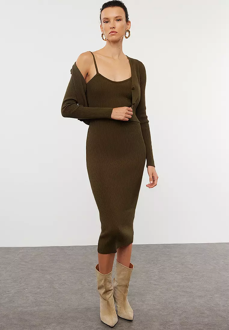 TrendyolKhaki Fitted Midi Knitwear Cardigan Dress Suit1339000.00674400.00