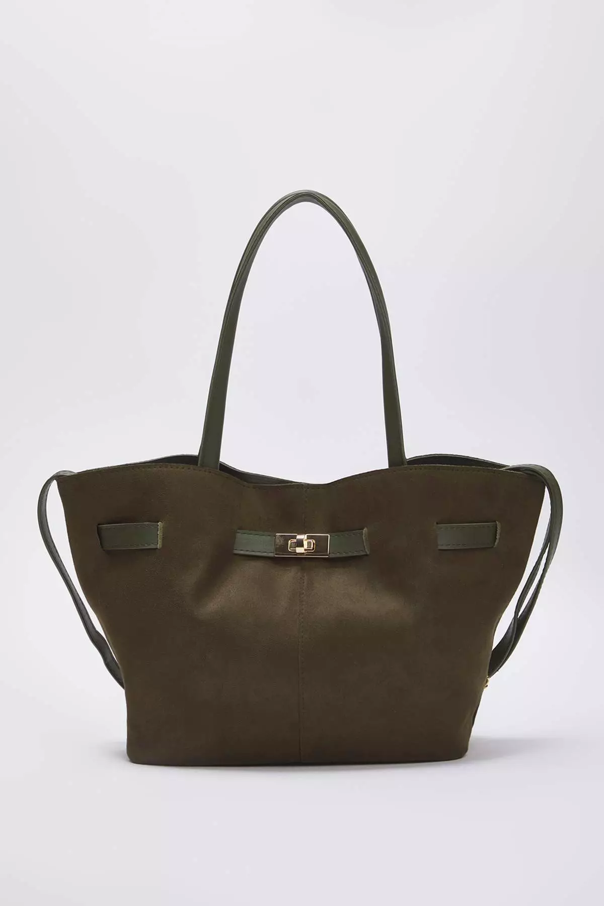 Khaki Soft Suede Handle And Crossbody Shoulder Bag