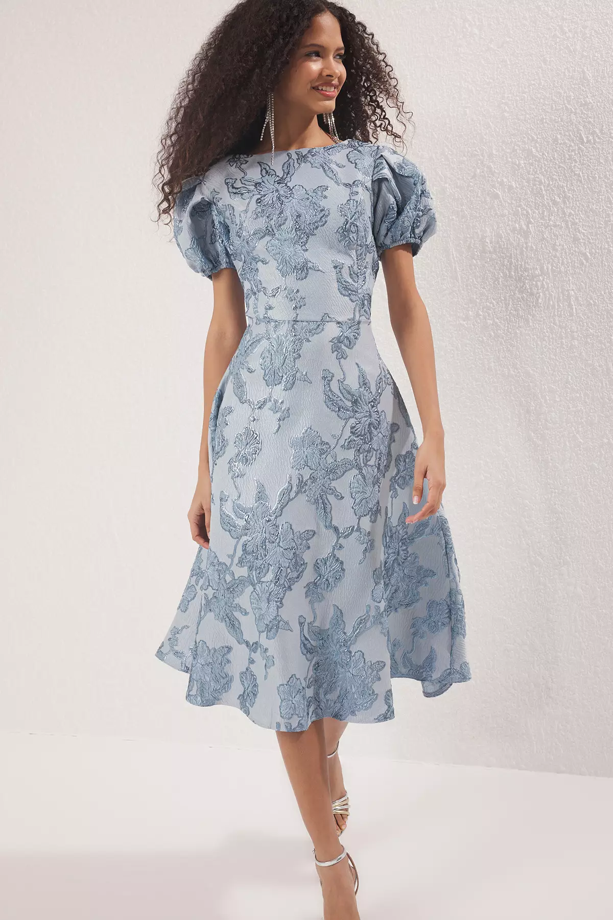 TrendyolLight Blue A-Line Jacquard Woven Midi Elegant Evening Prom Dress TPRSS25EL002021539000.001385100.00