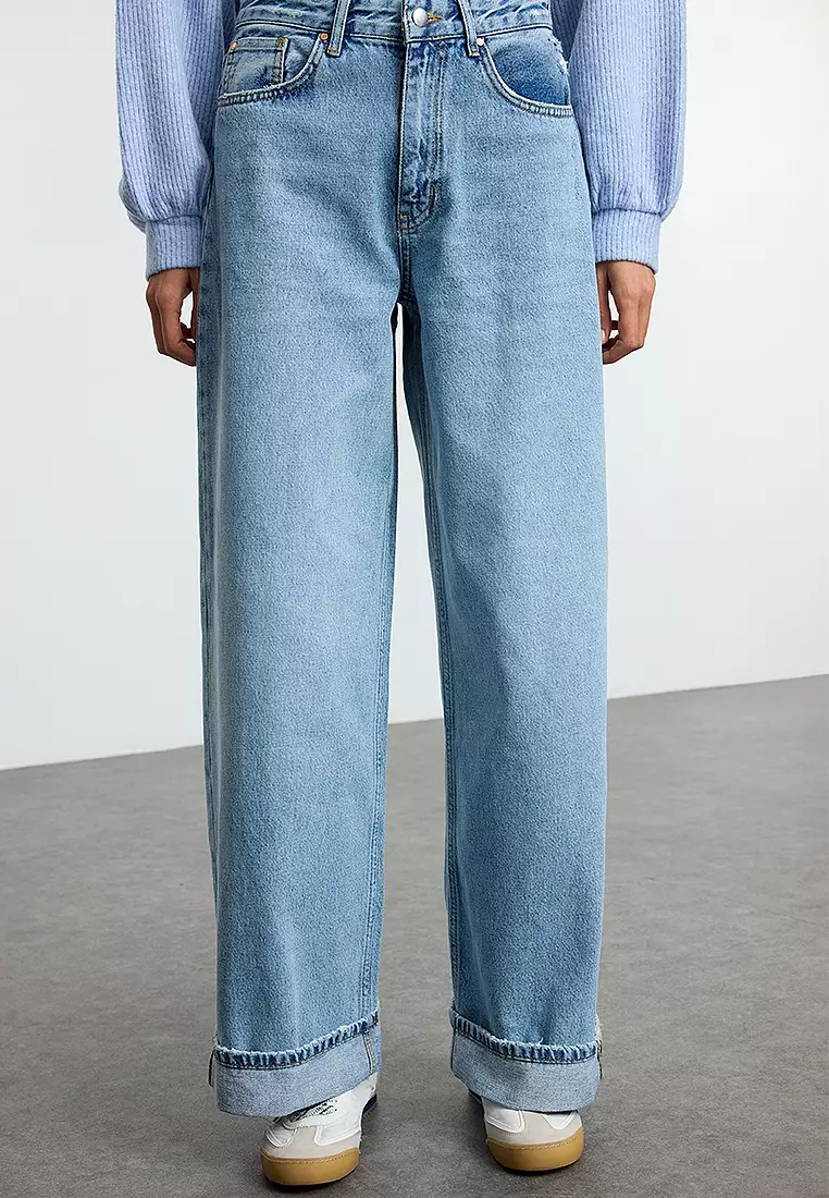 TrendyolLight Blue Folded Leg Regular Waist Skater Baggy Jeans879000.00791100.00