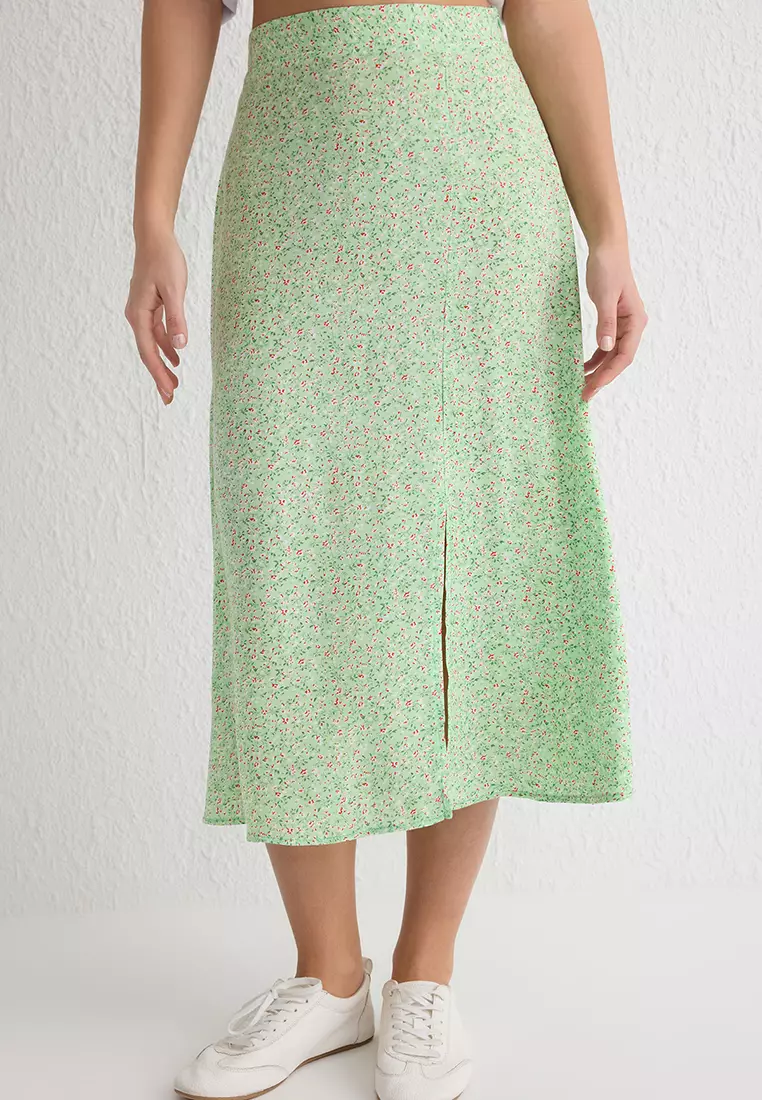 TrendyolLight Green Slit Detail Fabric Floral Patterned Midi Woven Skirt529000.00476100.00