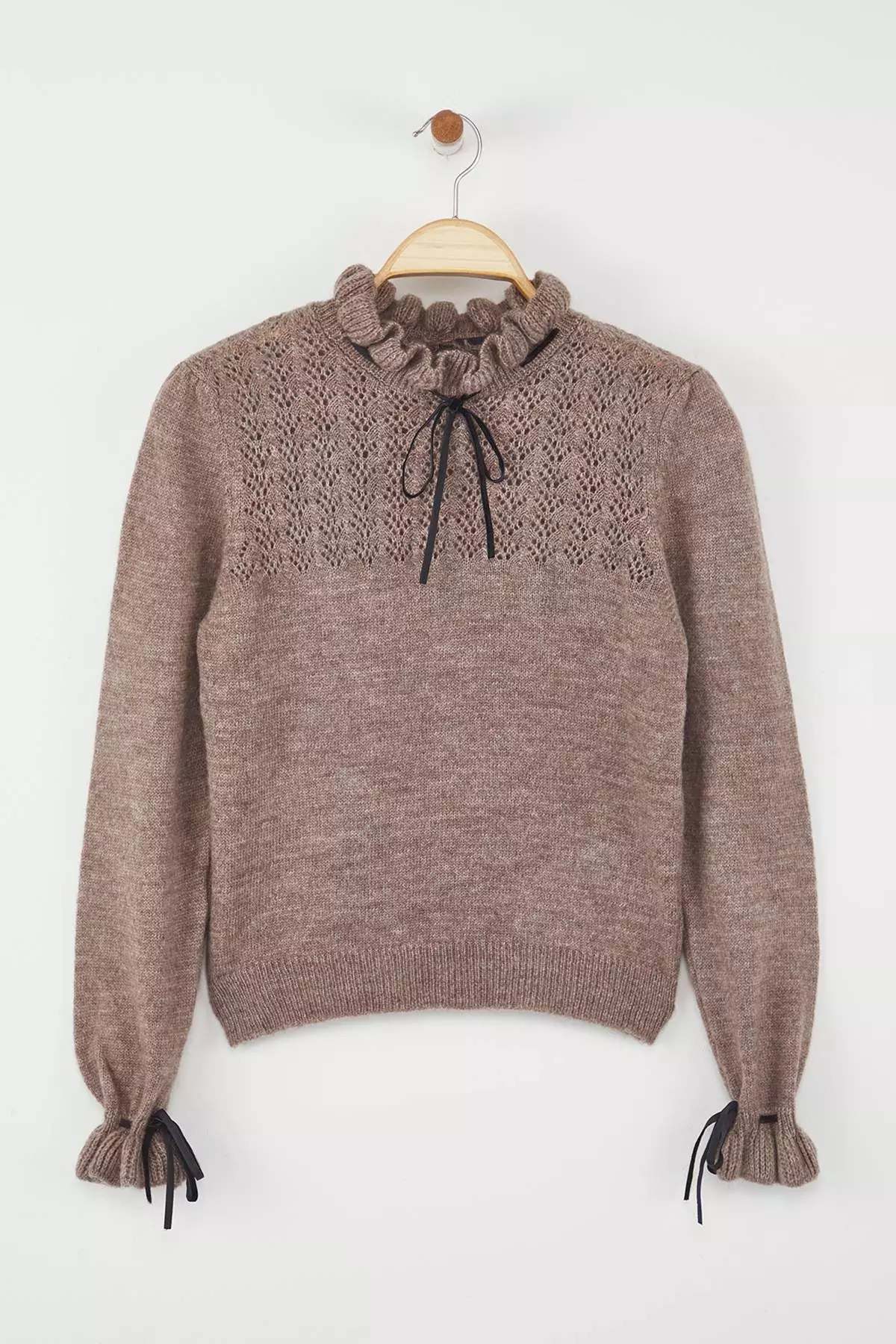 TrendyolMink Soft Texture Openwork/Hole Ribbon/Bow Detailed Knitwear Sweater Twoaw21Kz2355659000.00