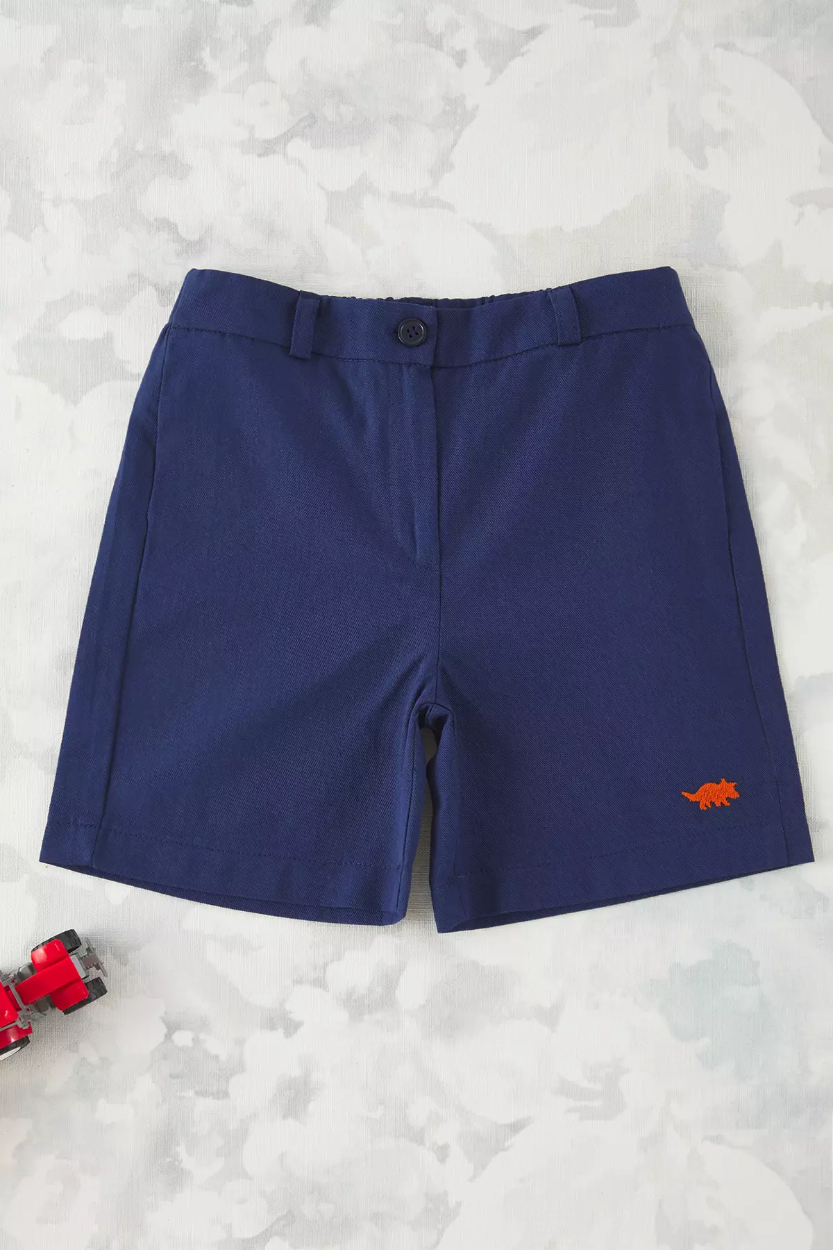 Navy Blue Girl's 100% Cotton Embroidered Shorts & Bermuda Tkdss25Sr00017