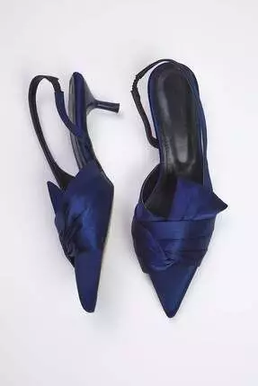 TrendyolNavy Blue Satin Knot Detail Pointed Toe Women's Kitten Heels Shoes Takss25To00104879000.00703200.00