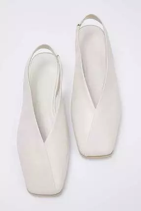 TrendyolOff White Genuine Leather Open Back Square Toe Women's Ballerina Flats Takss25Be000181079000.00863200.00