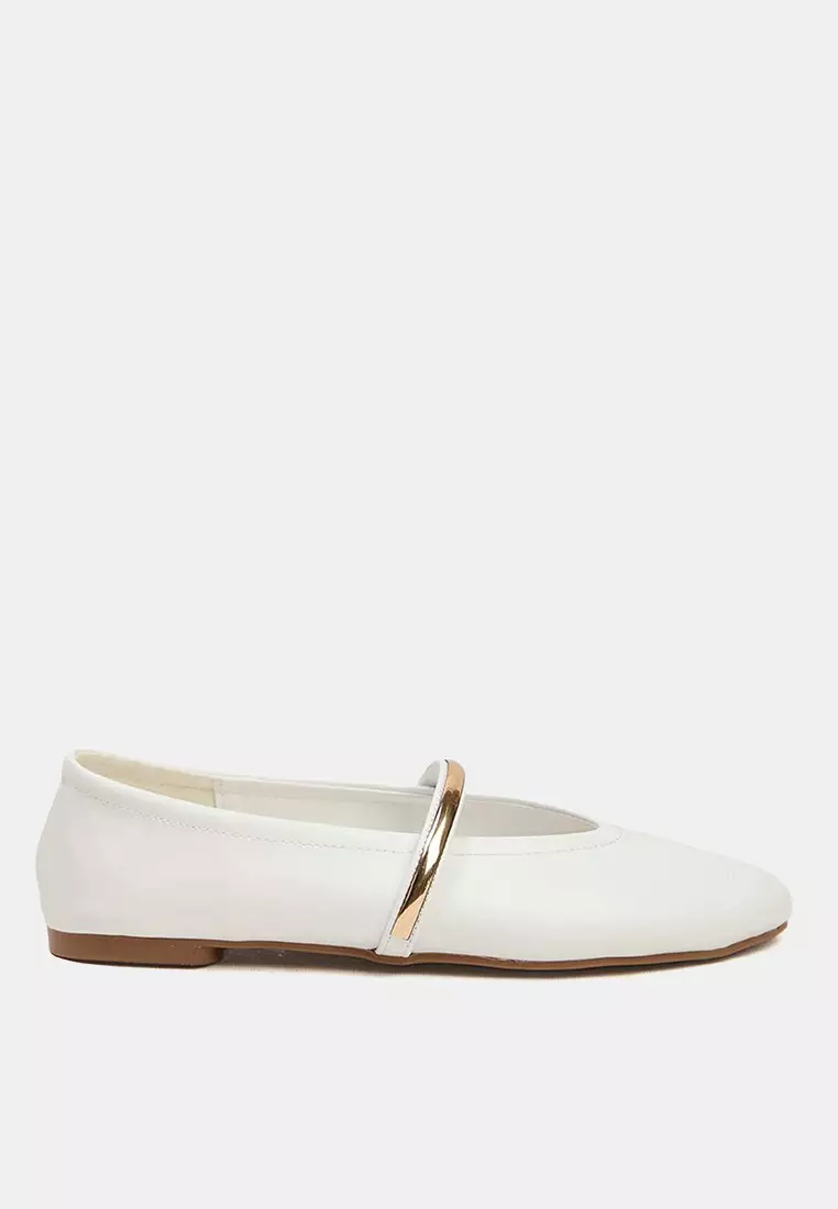 Off White Gold Metal Banded Mary Jane Almond Toe Ballerinas Takeaw26Be00005