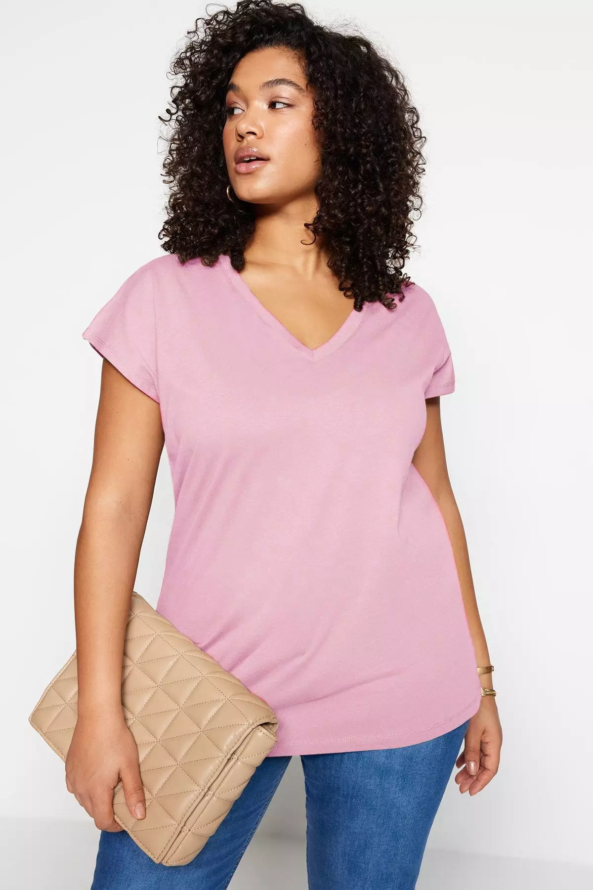 TrendyolPink Boyfriend V Neck Slit 100% Cotton Knitted T-Shirt TBBSS22BF0036299000.00