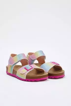 Pink Glitter And Buckle Detailed Velcro Sandals For Girls - Takss25Sd00028