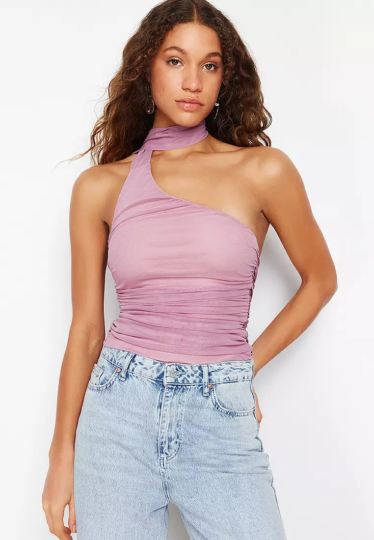 TrendyolPink Halter Drawstring Lined Stretchy Tulle Knitted Blouse329000.00