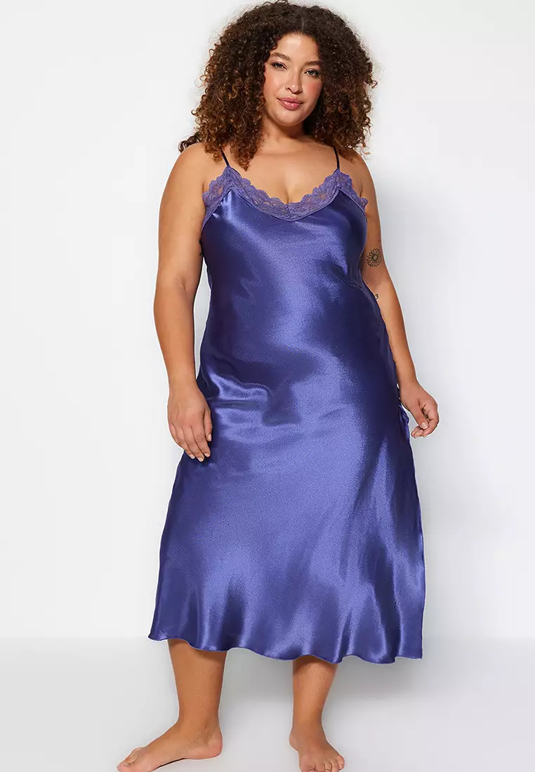 TrendyolPlus Size Lace Detail Satin Nightgown609000.00395850.00