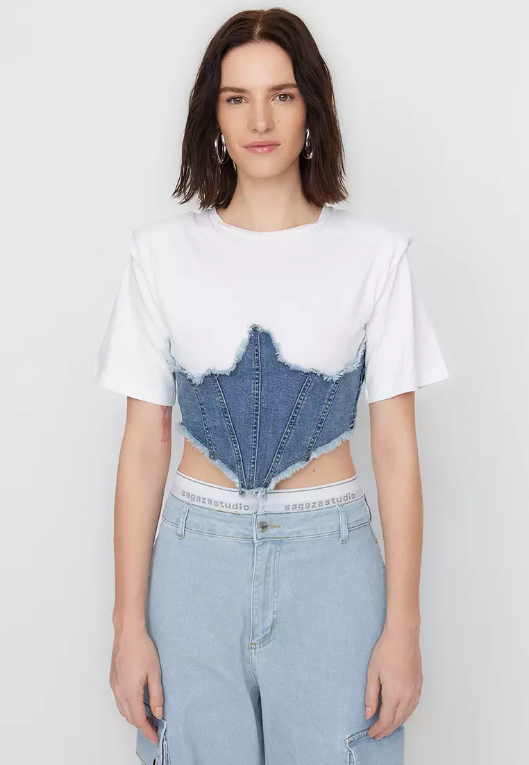 Sagaza Studio x Trendyol Denim Bustier T-Shirt