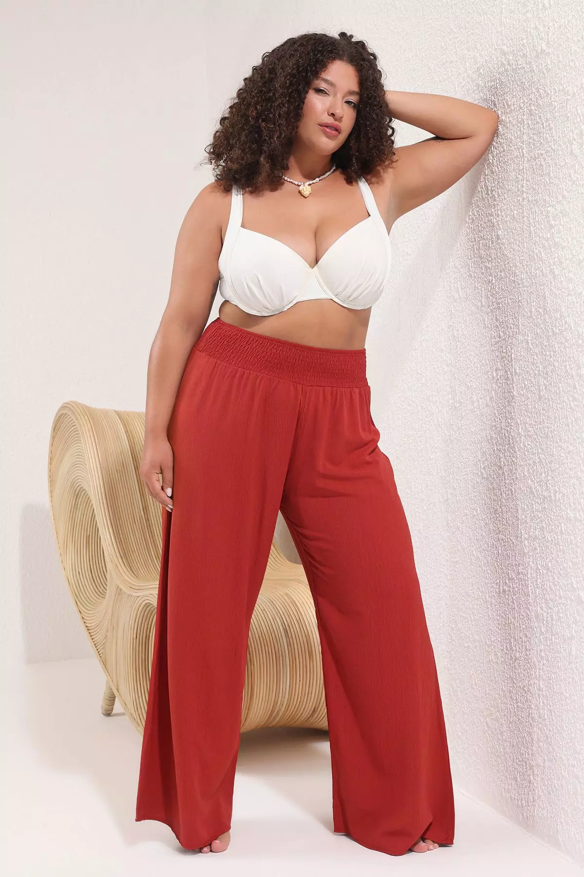 Tile Wide Leg High Waist Beach Wear Plus Size Trousers TBBSS25AR00000