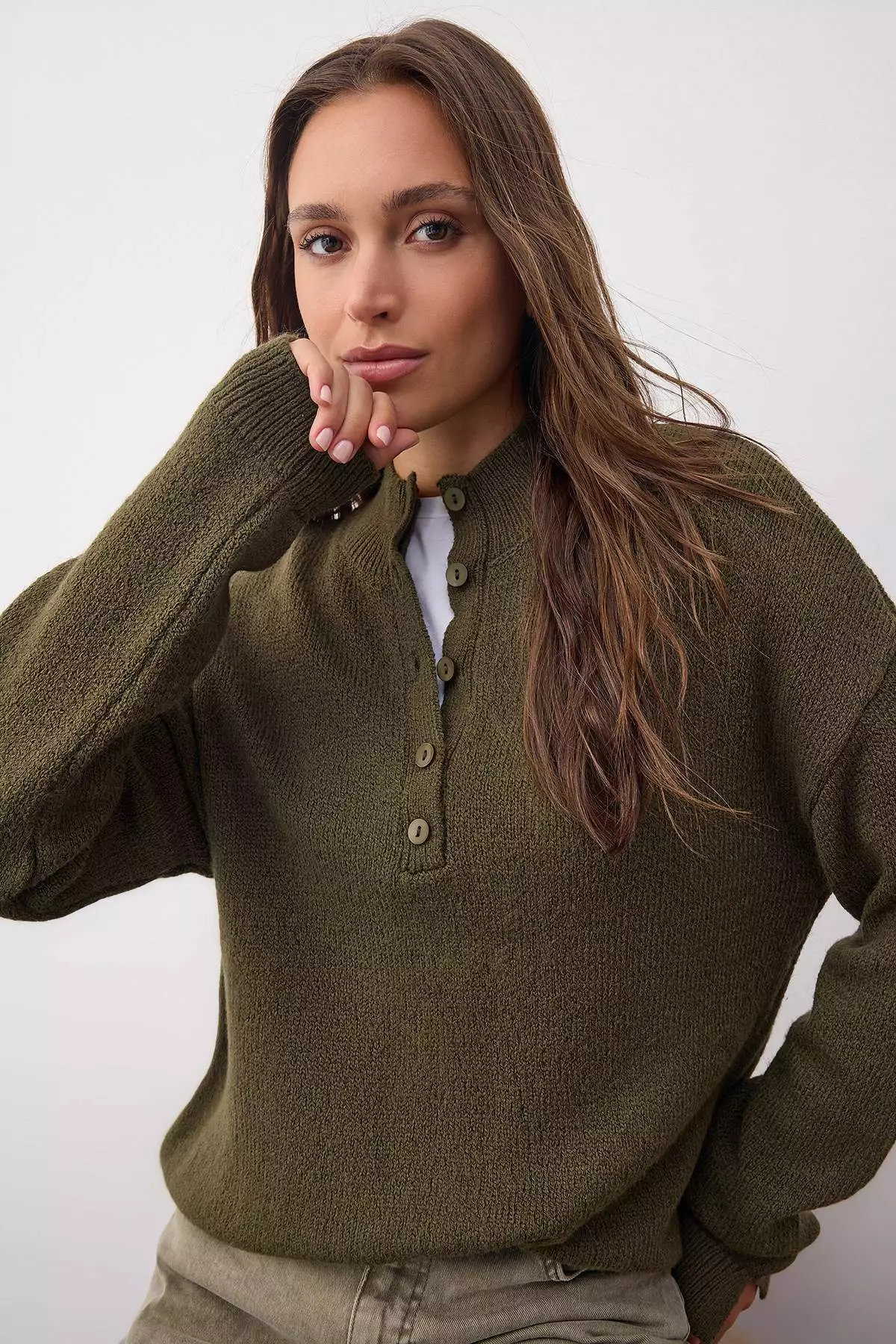 Wardrobe Essentials Khaki Soft-Textured Knit Sweater | Twoaw26Kz00074