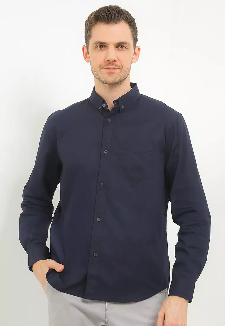 Kemeja Lengan Panjang Stretch Slim Fit - Navy
