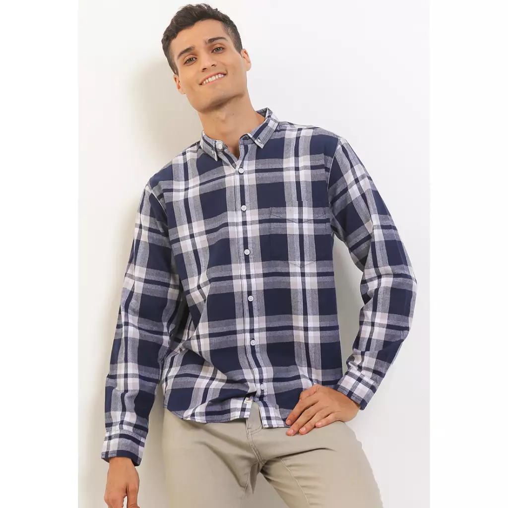 TRIPLE Kemeja Flanel Lengan Panjang Slim Fit (LS 505 NVY) - Navy