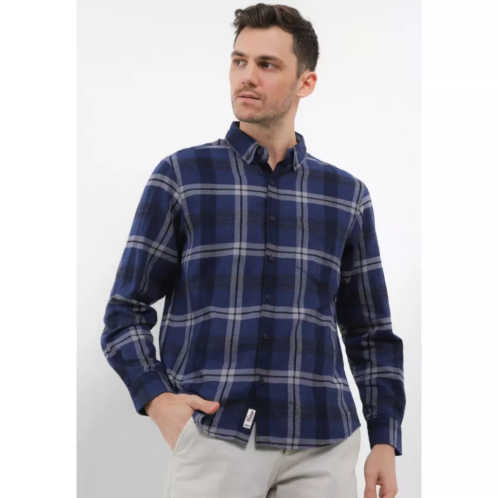 TRIPLE Kemeja Flanel Lengan Panjang Slim Fit (LS 524 NVY) - Navy