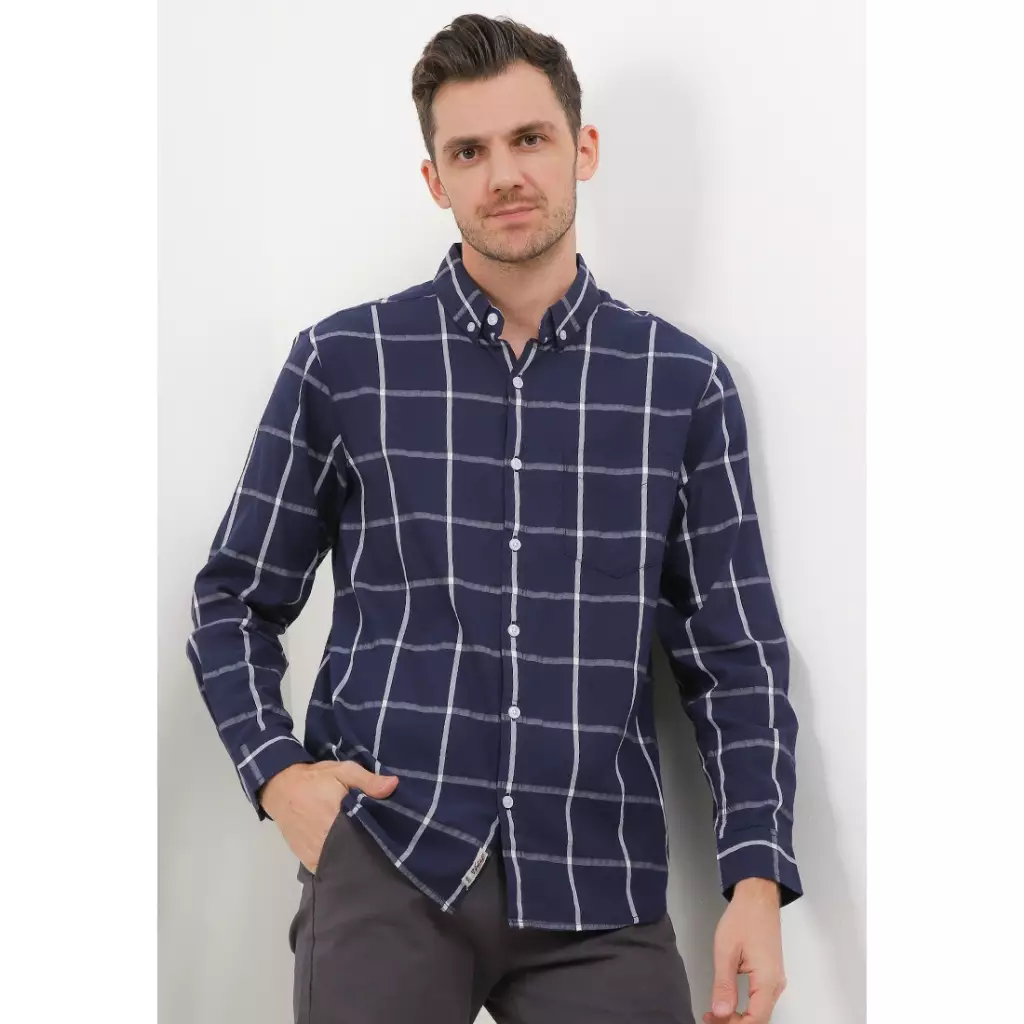 TRIPLE Kemeja Flanel Lengan Panjang Slim Fit (LS 525 NVY) - Navy