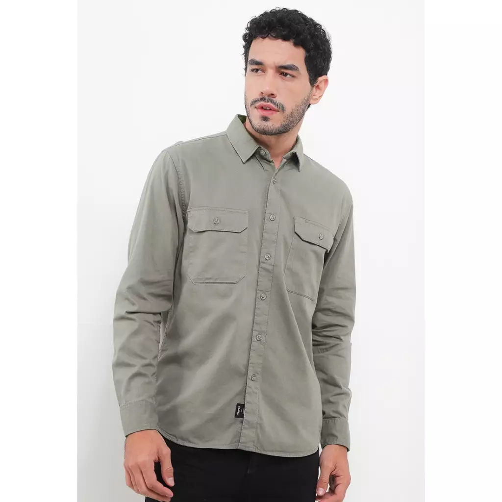 TRIPLE Kemeja Lengan Panjang Slim Fit (LS 535) Olive