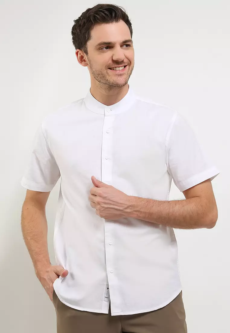 TRIPLE Kemeja Lengan Pendek Slim Fit - White