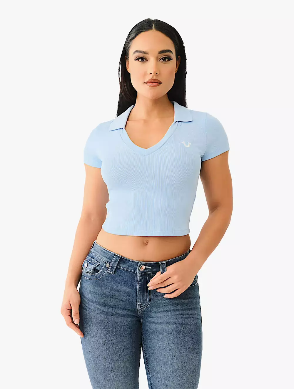 True Religion - Women Polo - HS POLO DEEP V RIB TOP - Blue