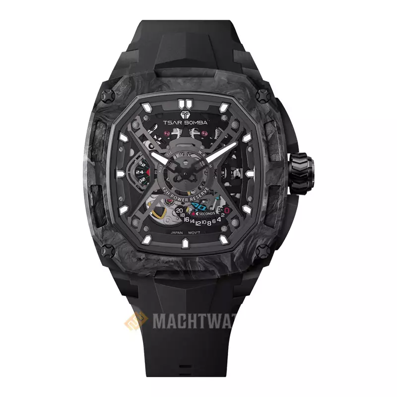 Tsar BombaJam Tangan Pria Tsar Bomba Dark Matter 5 TB8605-04 Automatic Carbon Fiber Bezel Skeleton Dial Black Rubber Strap12420000.006651000.00