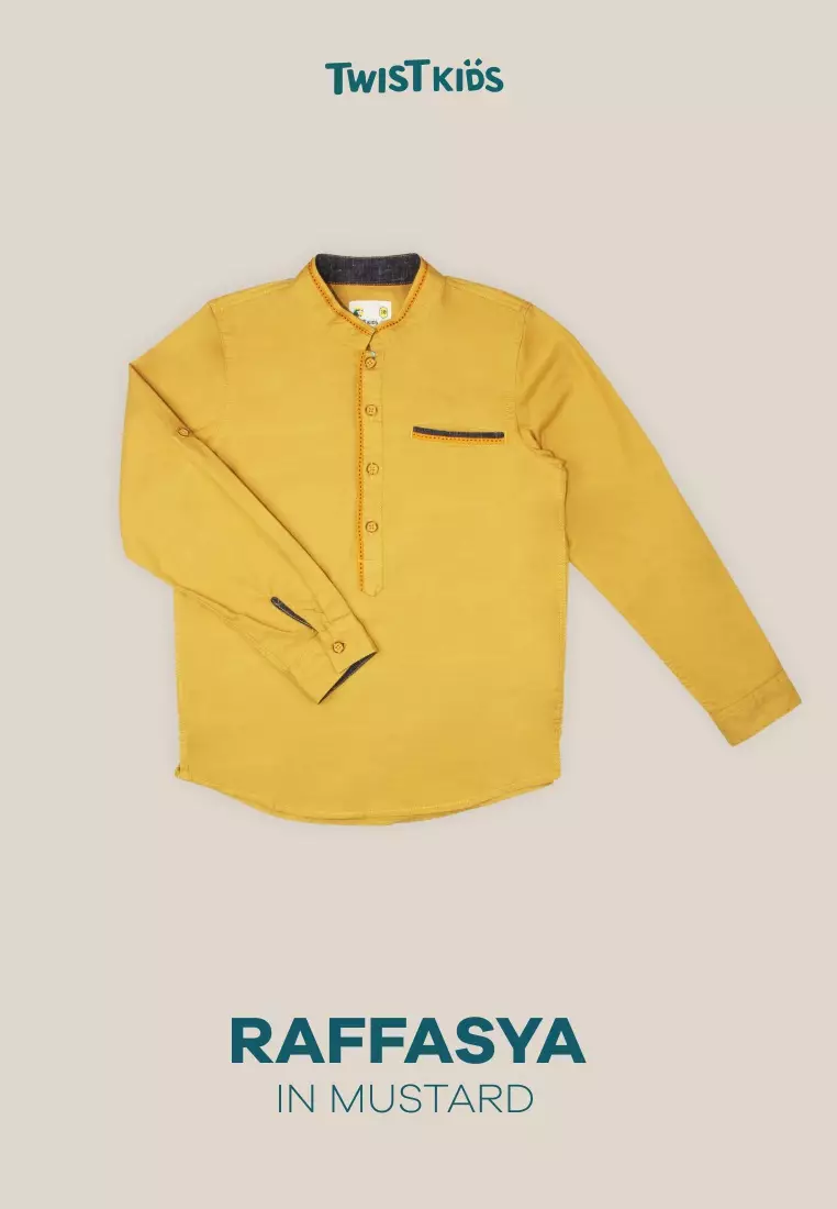 Twist KidsTwist Kids [Official Store] - Raffasha C, Baju Lebaran Anak Laki-Laki 2025, Kemeja Koko Lengan Panjang Anak Laki-Laki (usia 4-14 tahun) Warna Mustard379900.00169000.00