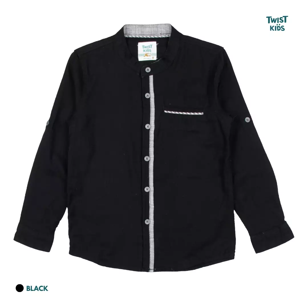 Twist KidsTwist Kids [Official Store] - Zaki C, Baju Lebaran Anak Laki-Laki 2025, Baju Muslim/Koko/Kaftan Polos Lengan Panjang Anak Laki-Laki (usia 4-14 tahun) Warna Hitam (Black)399900.00215946.00