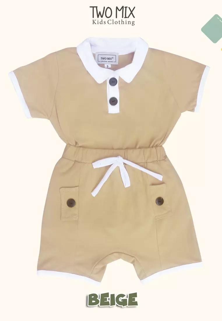 TWO MIXSale 9.9 Two Mix - Baju Setelan Anak Lucu Laki-Laki Celana Lengan Pendek Kaos Katun 0-3 Tahun 4363B Beige200000.0090000.00
