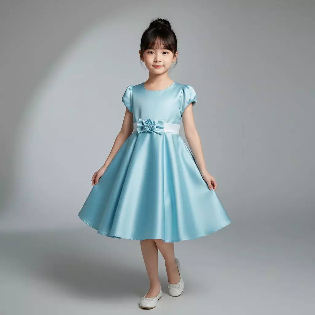 Two Mix Baju Anak Perempuan Bahan Satin - Dres Anak Perempuan Fashion Usia 1-12 Tahun 4242 Ice Blue