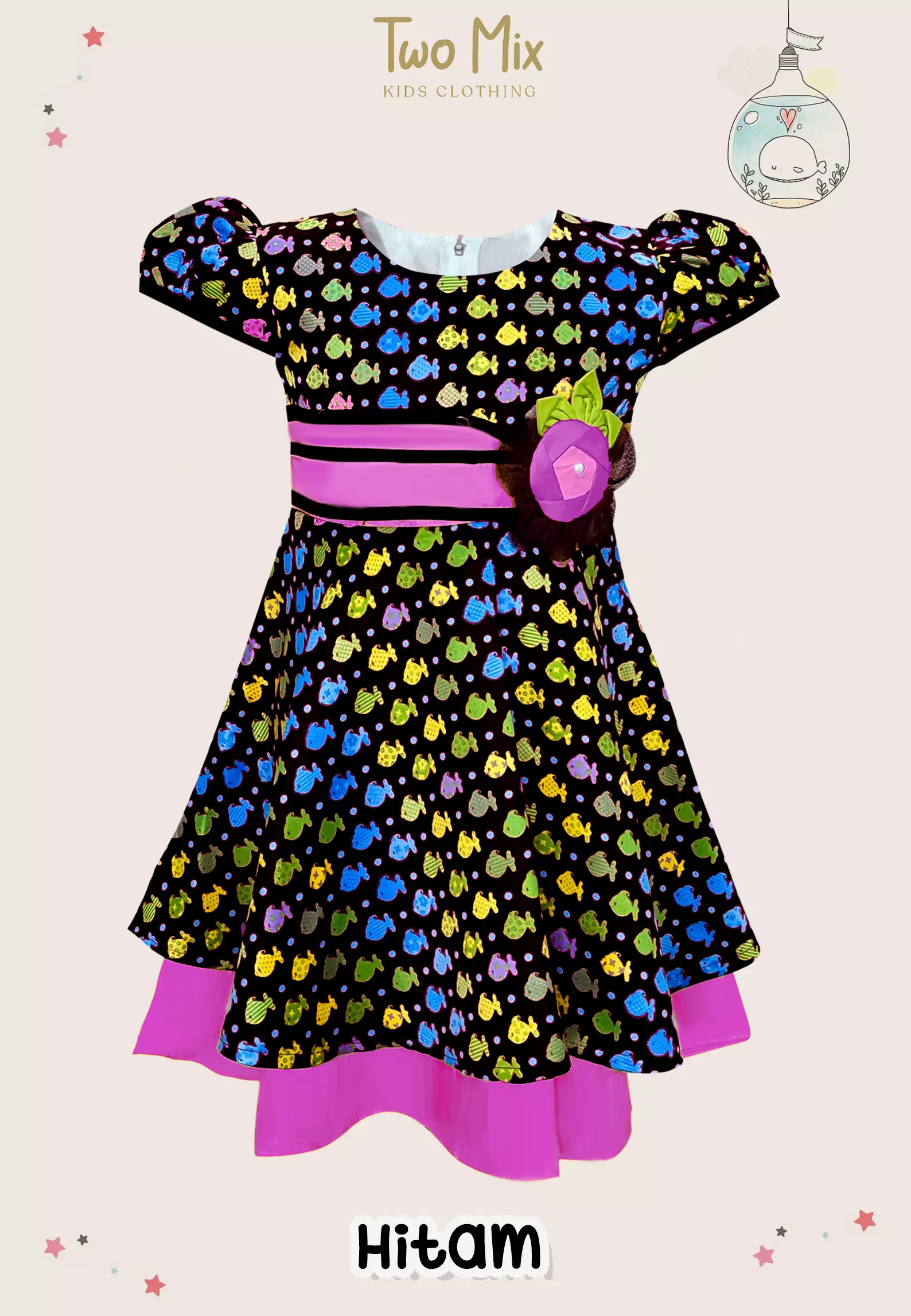 TWO MIXTwo Mix Baju Anak Perempuan - Dress Anak Cantik Bahan Satin Usia 1-12 Tahun Y849 Hitam300000.00124000.00