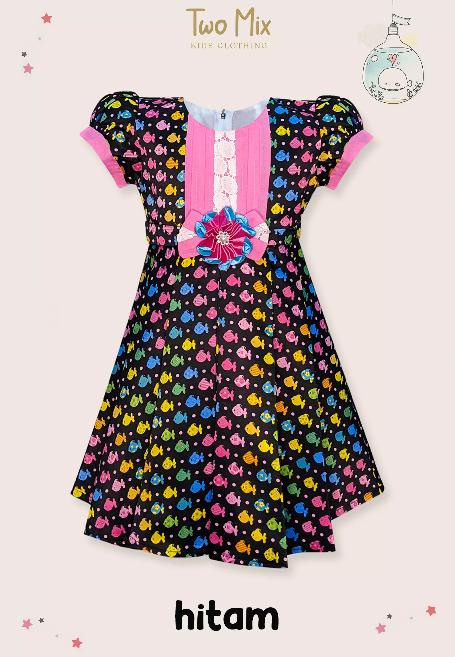 TWO MIXTwo Mix Baju Anak Perempuan - Dress Anak Cantik Bahan Satin Usia 1-8 Tahun Y851 Hitam300000.00187500.00