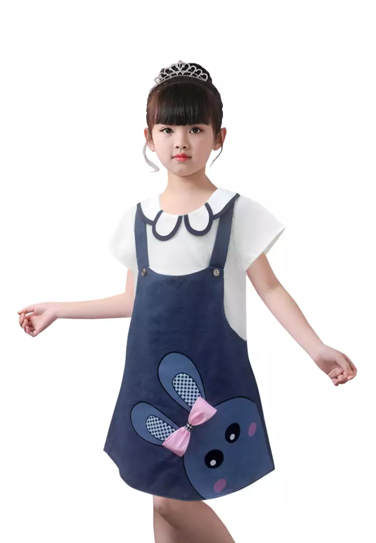 Two Mix Baju Anak Perempuan - Dress Anak Cewek Fashion Bahan Jeans Digital Print Kelinci 4094