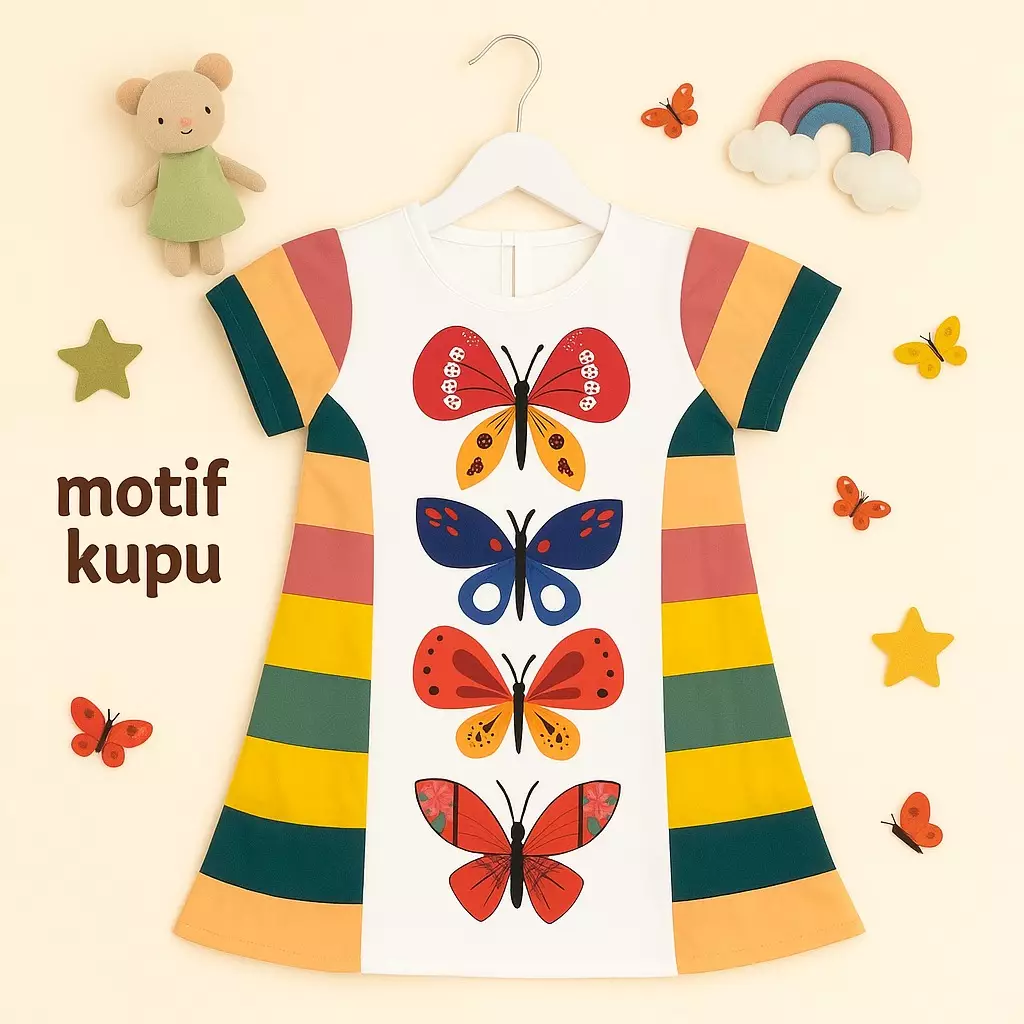 Two Mix Baju Anak Perempuan - Dress Anak Cewek Kupu Bunga 1-8 Tahun 4352