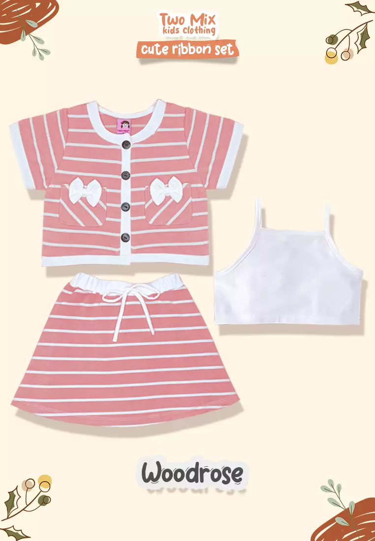 TWO MIXTwo Mix - Baju One Set Anak Perempuan - Setelan Anak Cewek Lucu Salur Kaos 1 2 3 4 5 6 7 8 Tahun 4366B Wood Rose300000.00135000.00