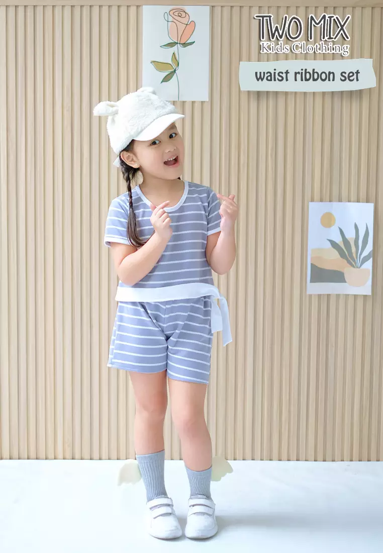 TWO MIXTwo Mix - Baju Setelan Anak Perempuan Celana Pendek Salur 1-8 Tahun 4366 Dusty Blue300000.00115000.00