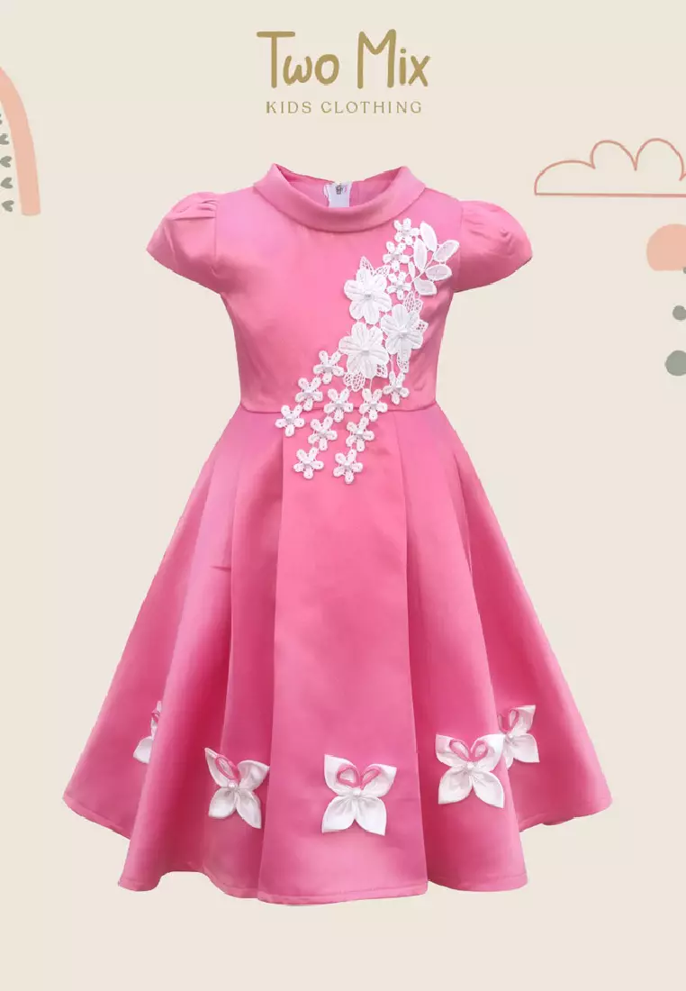 Two Mix - Dress Anak Perempuan Bahan Satin 1-12 Tahun Y877 - Colour Pink