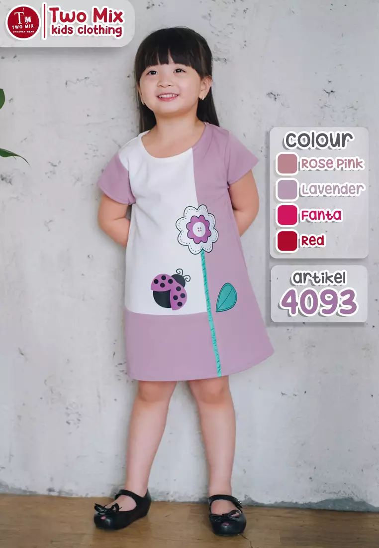 Two Mix Dress Anak Perempuan - Baju Anak Fashion Motif Bunga 4093 Lavender