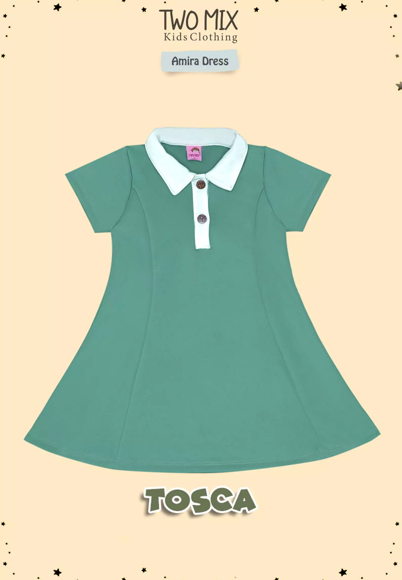 Two Mix - Dress Anak Perempuan - Baju Dress Anak Cewek - Amira Dress 1-8 Tahun 4372 Tosca