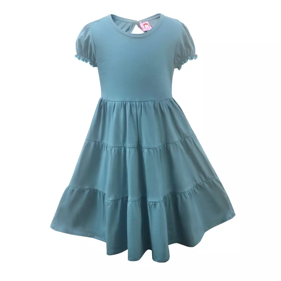 Two Mix Dress Anak Ruffle Perempuan Bahan Kaos Katun Combed Usia 1-12 Tahun 4254