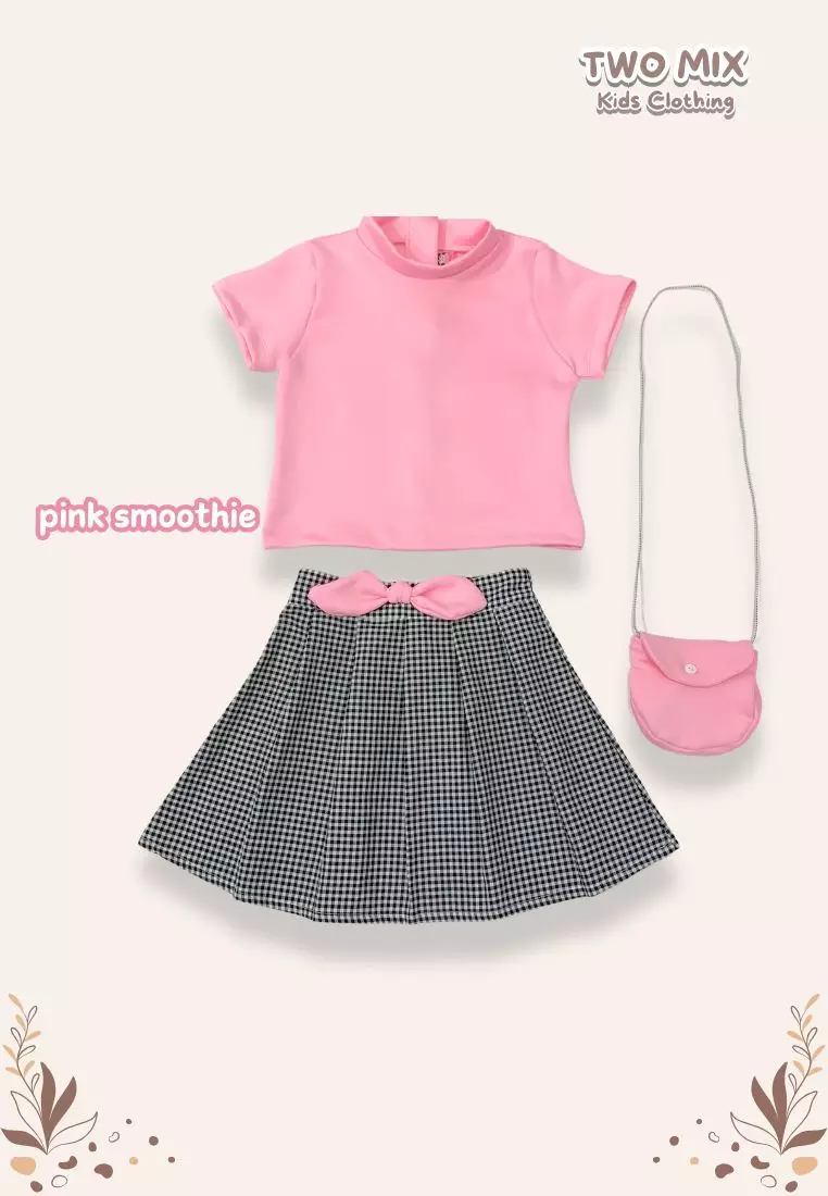 Two Mix - Emilia Setelan Baju Rok Anak Perempuan Gemas + Tas Lucu 1-6 Tahun 4412 Pink