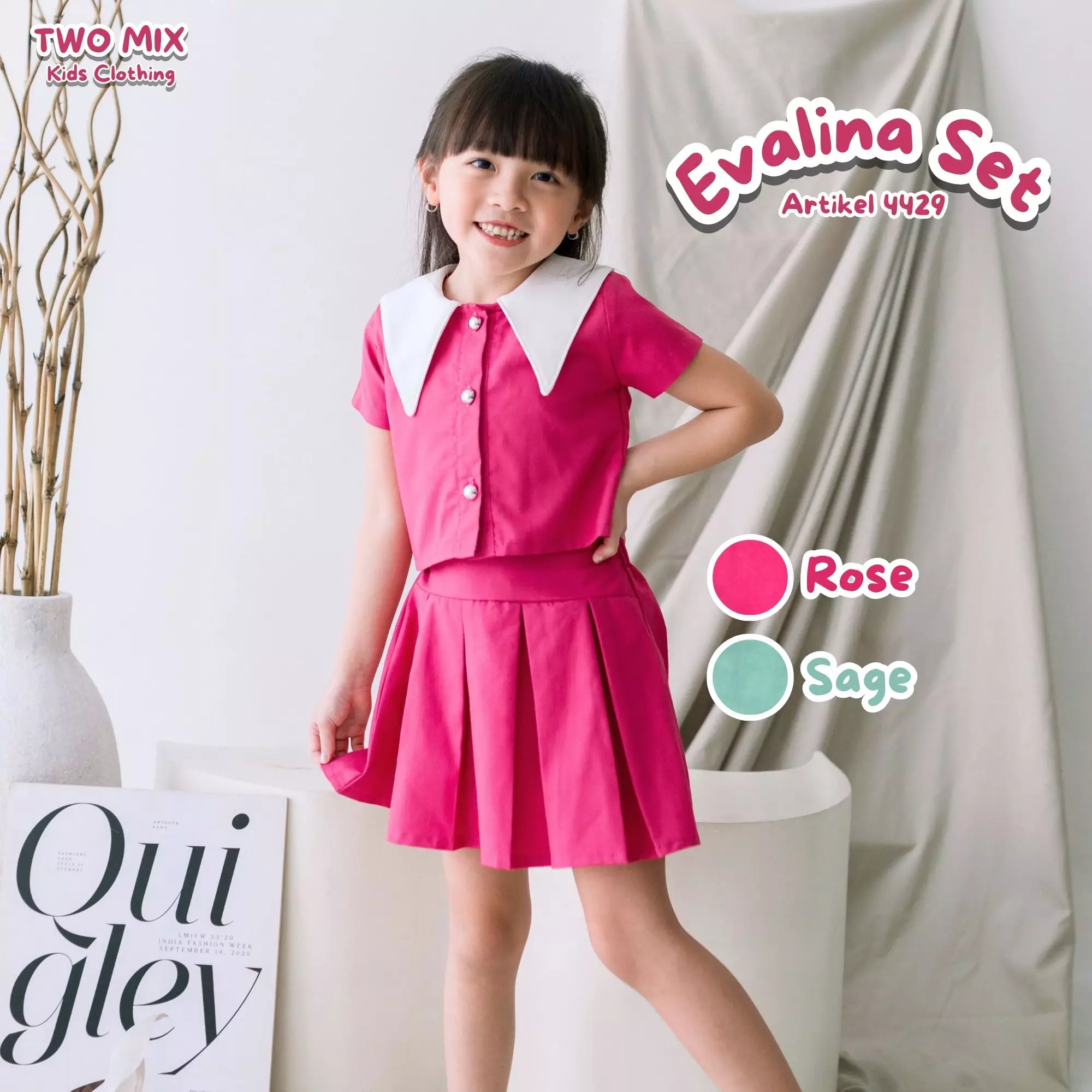Two Mix - Evalina Setelan Baju Rok Anak Perempuan Lebaran 2025 1-6 Tahun 4429 Rose